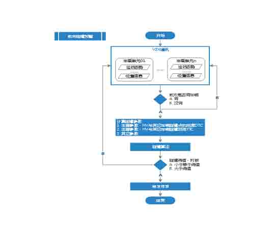 2)HV接收到RV的行駛數(shù)據(jù)信息,依據(jù)車輛的位置和行駛情況進(jìn)行計算,當(dāng)車輛有發(fā)生碰撞風(fēng)險時,給駕駛員進(jìn)行預(yù)警;當(dāng)車輛無碰撞風(fēng)險后,清除預(yù)警;